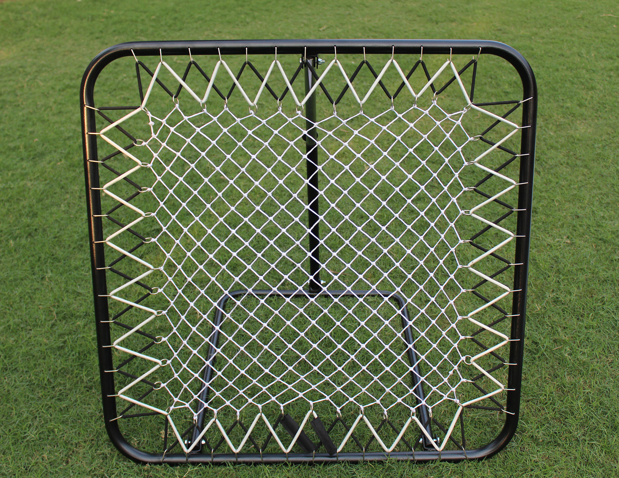 Il telaio è realizzato in tubo di acciaio verniciato a polvere da 25 mm. con supporto posteriore pieghevole e regolabile variando gli angoli di rimbalzo. La rete è realizzata in corda intrecciata da 3 mm. fissata ad elastici rinforzati. Ottimo prodotto in rapporto qualità prezzo.